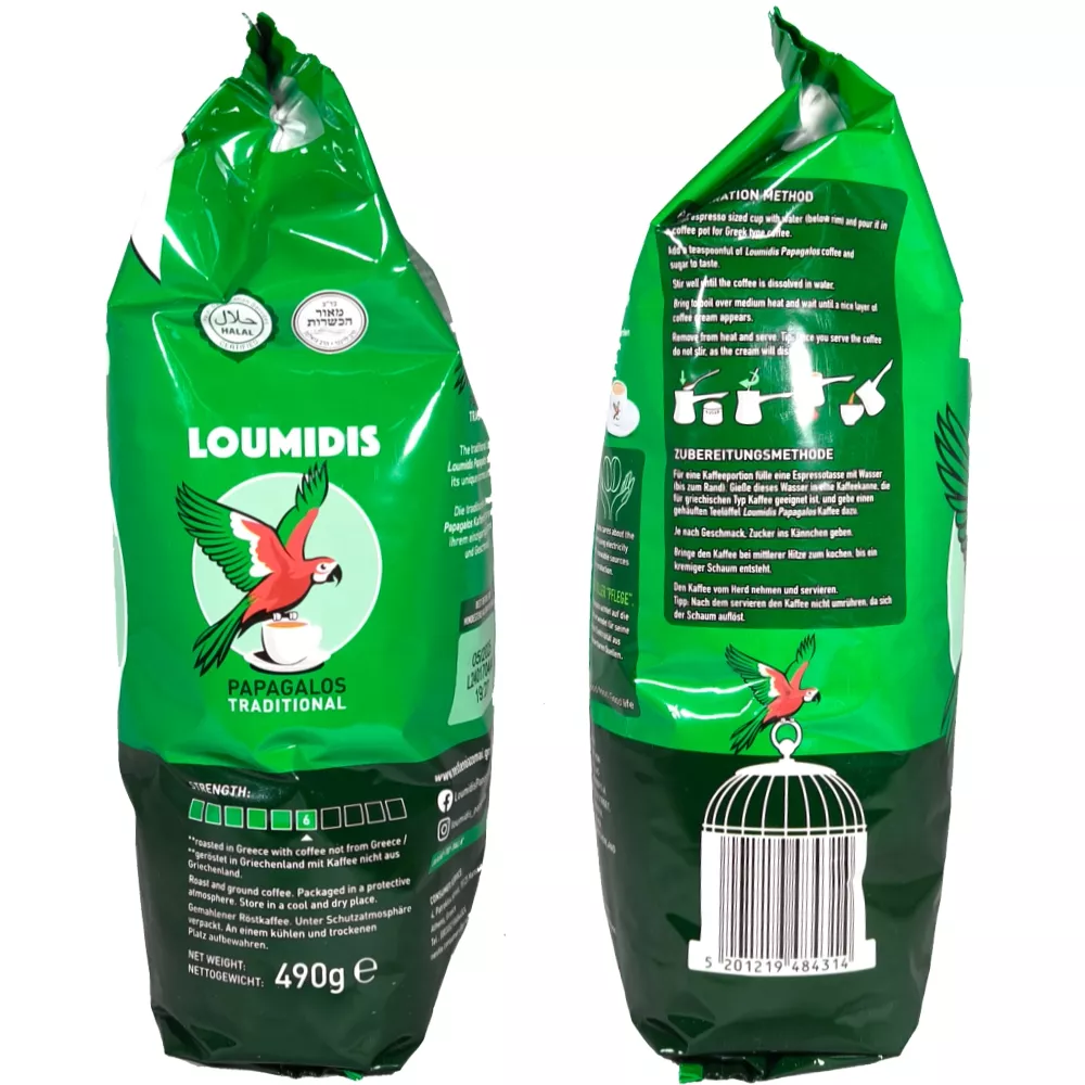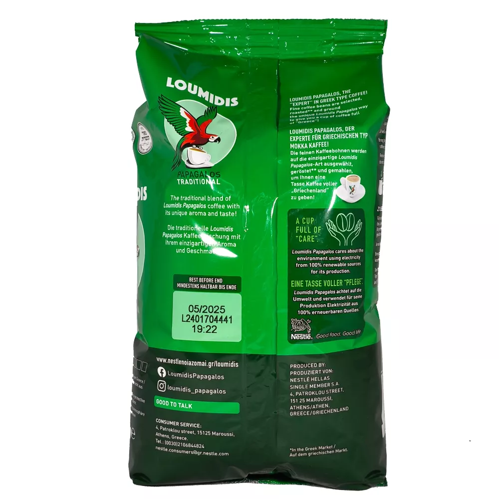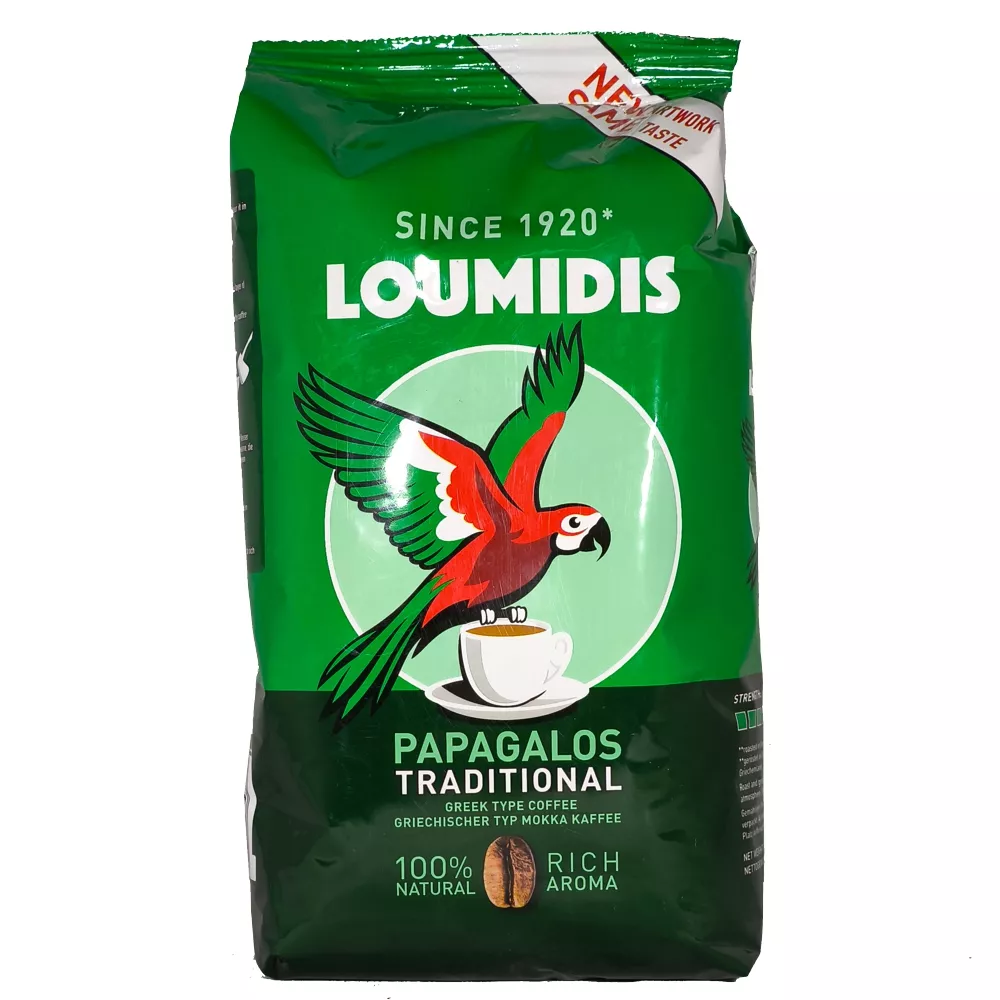 Mokka Loumidis Papagalos, ein griechischer Röstkaffee zum Aufbrühen. Für diesen Kaffee werden ausschließlich die feinsten Bohnen verwendet. Gehobene Qualität mit uralter Tradition - ein exzellenter Genuß für Kaffeeliebhaber.