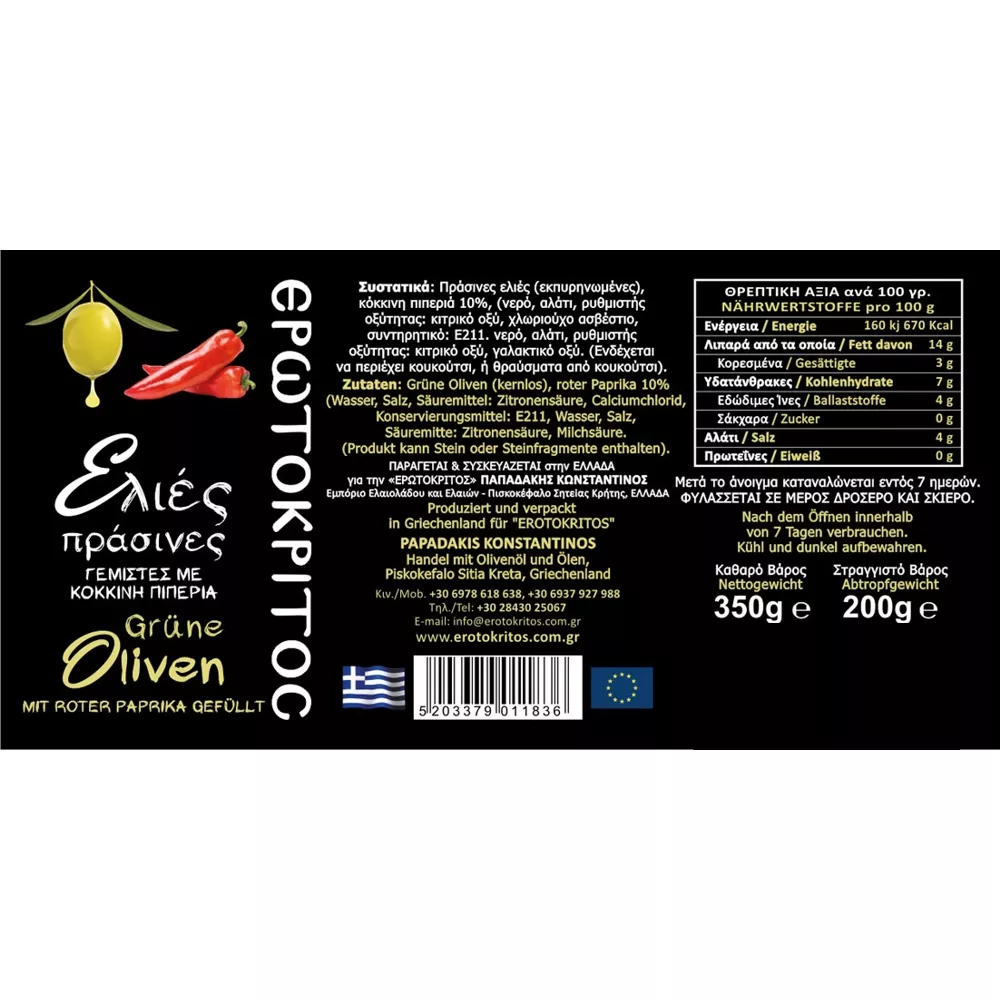 Green olives with paprika from Crete (drained net weight: 200 g), Erotokritos