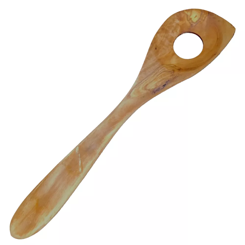 Very nicely crafted olive wood wooden spoon - round and with an edge. Very practical, handy and with very fine color nuances.