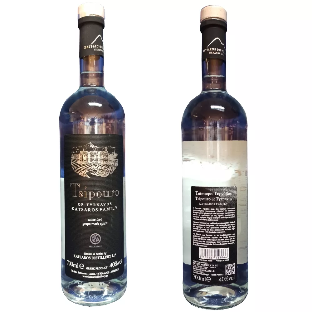Die Destillerie Katsaros in Tirnavos ist eine Destillerie, die in vierter Generation als Familienunternehmen  betrieben wird. Zugleich ist sie die älteste Ouzodestillerie Griechenlands. Seit 1856 werden hier Ouzo- und Tsipouro- Sorten produziert, die auf traditionellen Rezepten basieren. Die feinen Spirituosen werden in handgefertigten Kupferkesseln hergestellt, deren Böden sogar mit Olivenholzzweigen ausgelegt sind, um ein "Anbacken" des Mostes zu verhindern.